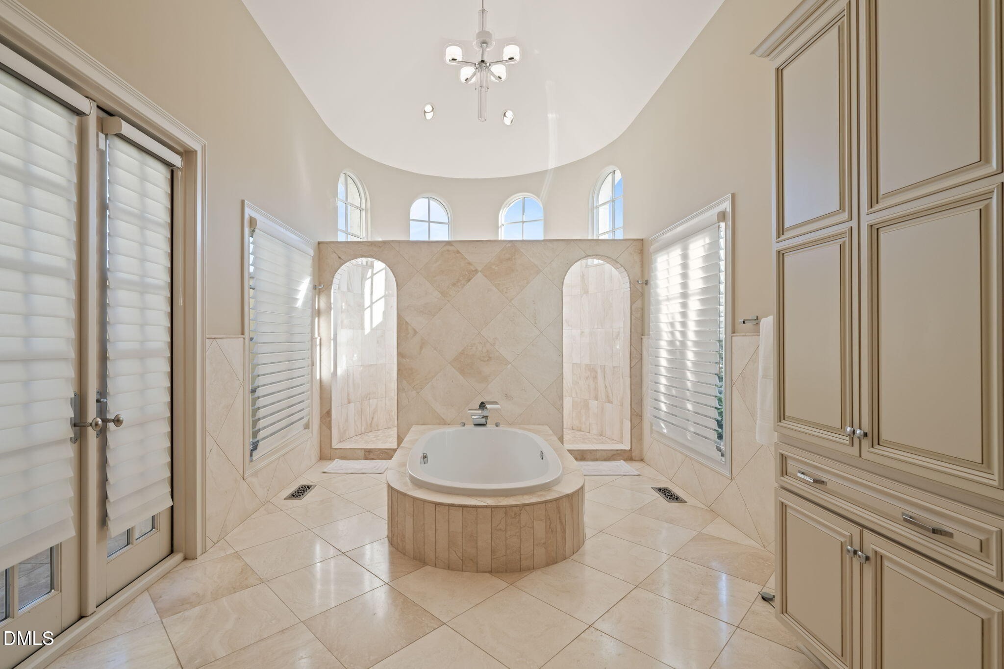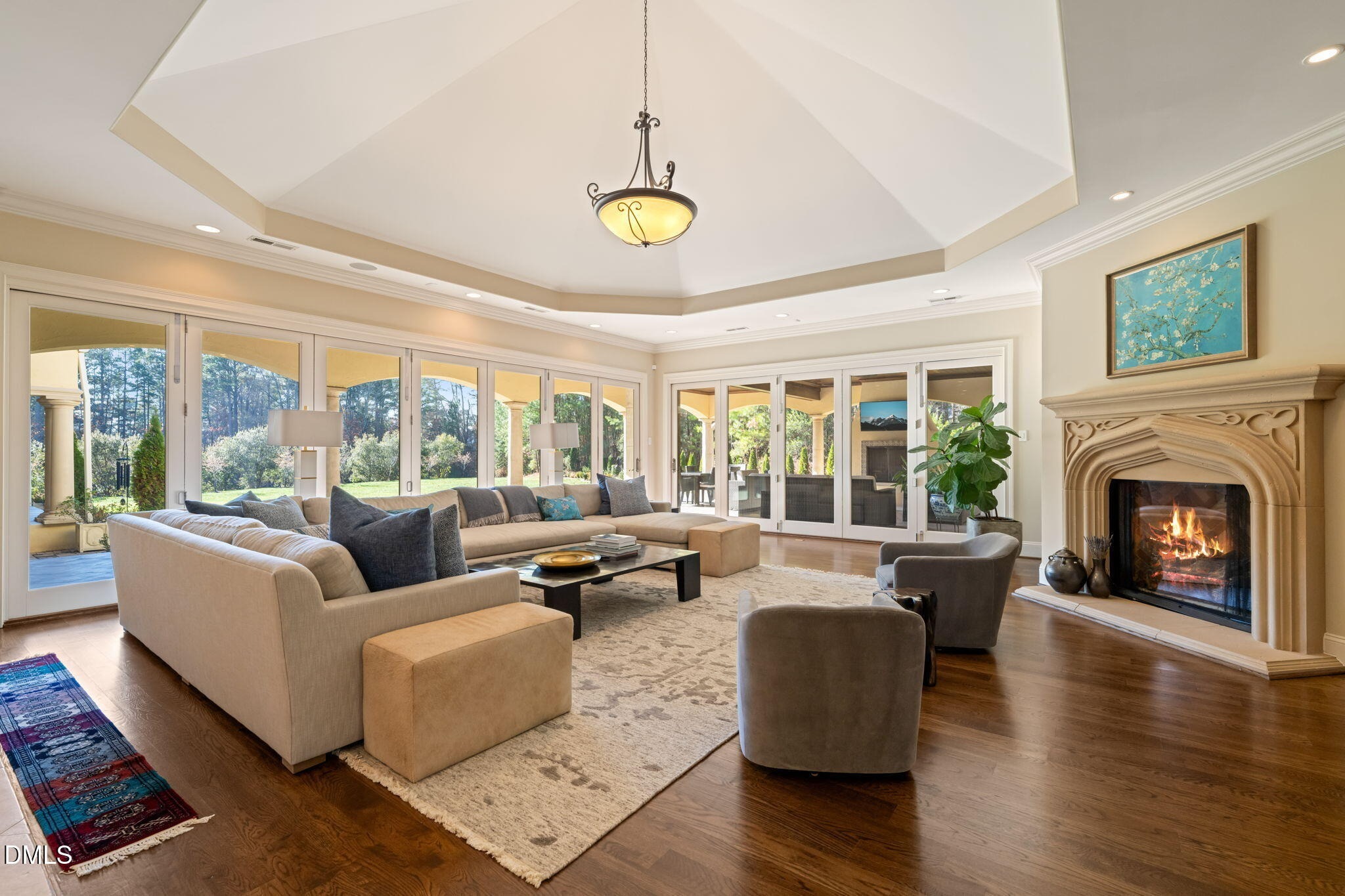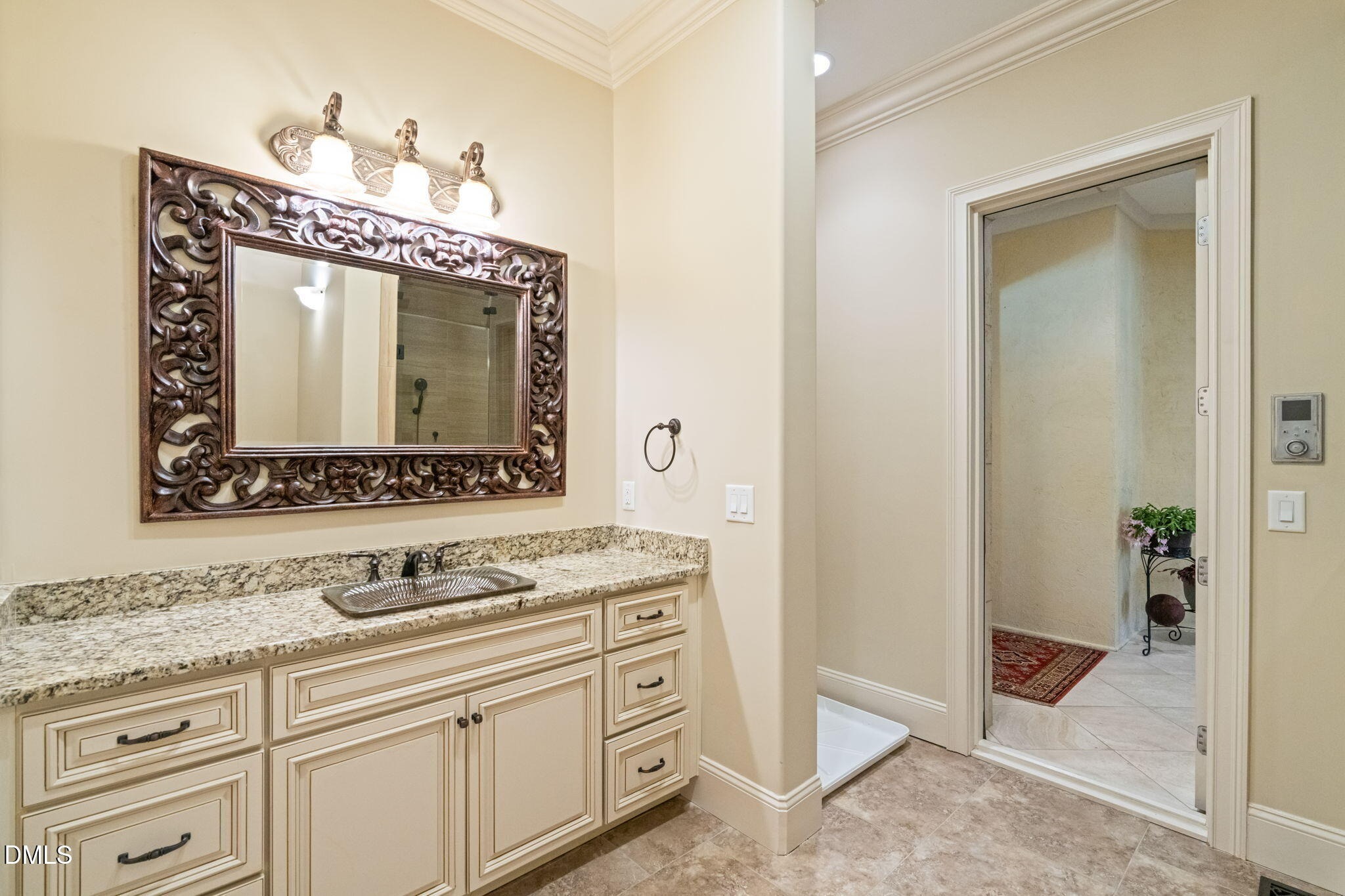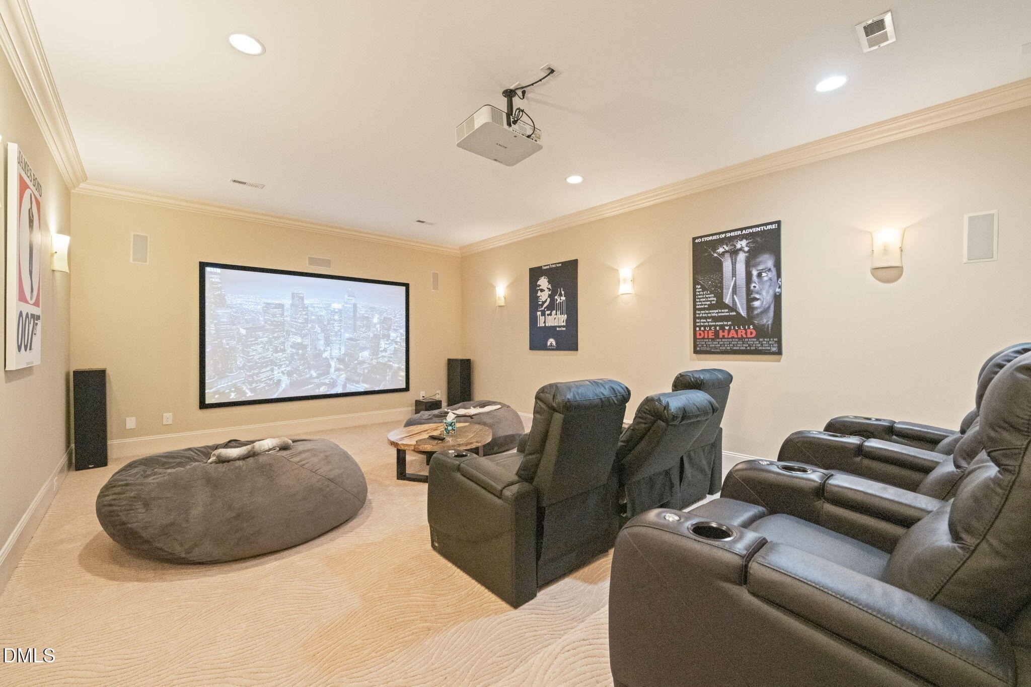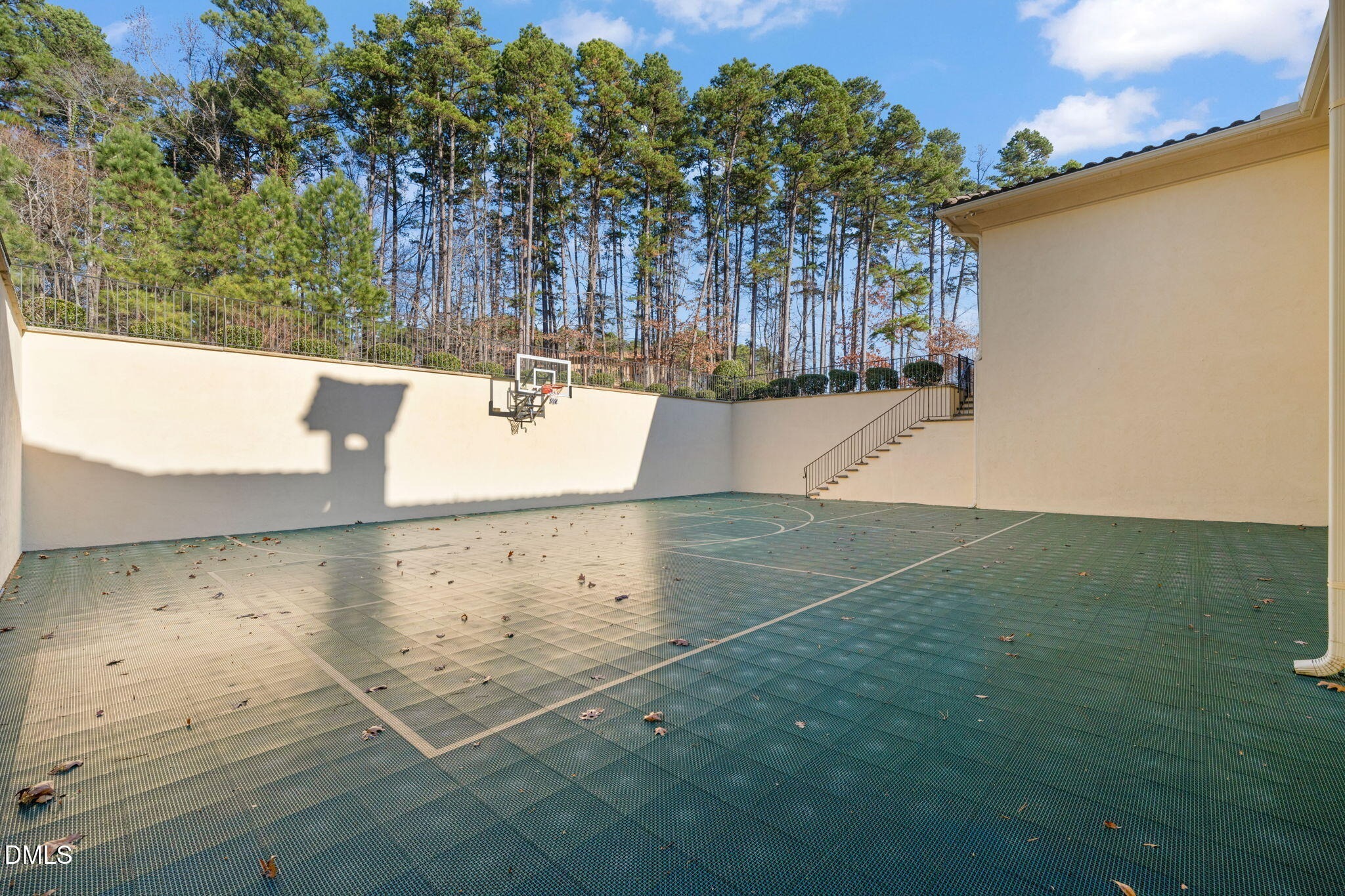 Discover refined elegance in this 13,341 sq. ft. Mediterranean-inspired estate on 3.31 private acres in Maida Vale, one of the Triangle’s premier gated communities. Offering rare privacy with unmatched convenience, this in-town estate sits minutes from RTP, RDU, Duke, UNC, world-class healthcare, and premier shopping. Built with ultra-durable concrete construction and a barrel-tile roof, it delivers lasting quality, energy efficiency, and peace of mind. Designed for both everyday luxury and large-scale entertaining, the home features an expansive covered veranda with an outdoor kitchen, fireplace, lounge area, and retractable window walls; a private sports court; a separate gym with steam shower; a movie theater and wine room; and a level rear yard envisioned for a custom pool (subject to approvals). Seamless indoor/outdoor flow creates an effortless setting for gatherings of any size. A fully self-contained lower level offers exceptional flexibility for extended family or multigenerational living, complete with its own kitchen, two bedrooms, large living area with fireplace, sports court access, and private elevator. The main level includes a secluded owner’s wing with study, formal and informal living spaces, a gourmet chef’s kitchen, floor-to-ceiling windows, guest suite, second office, and direct access to the veranda. Upstairs, three spacious guest suites—including a second primary—feature private balconies overlooking the grounds. Set at the end of a quiet cul-de-sac with a circular drive and covered portico, the home welcomes you with dramatic staircases and clear views to the lush backyard. With its rare acreage, solid construction, low-maintenance design, and resort-style amenities, this residence represents exceptional value among the Triangle’s luxury estates. Conceptual pool rendering is AI-generated.