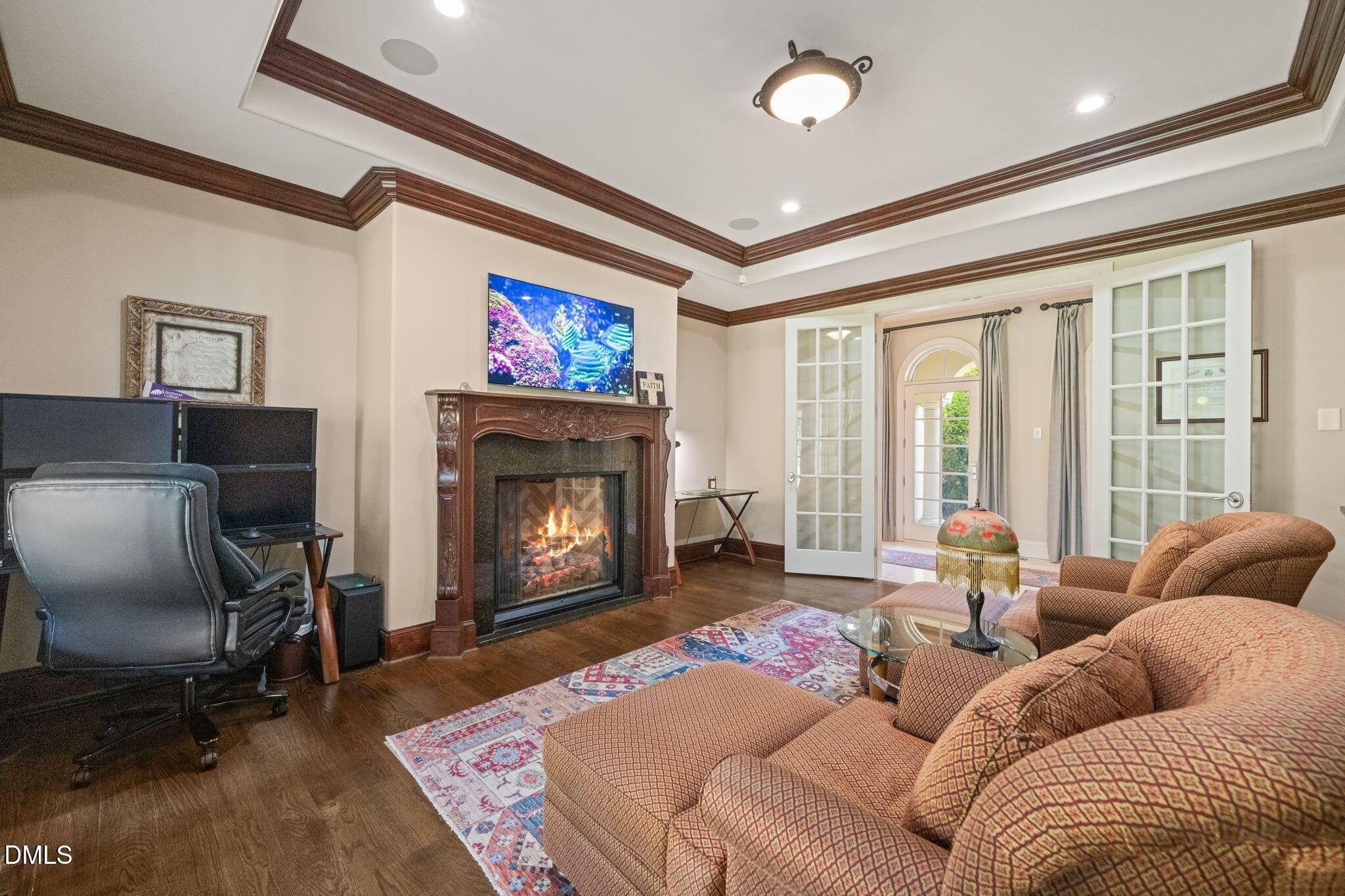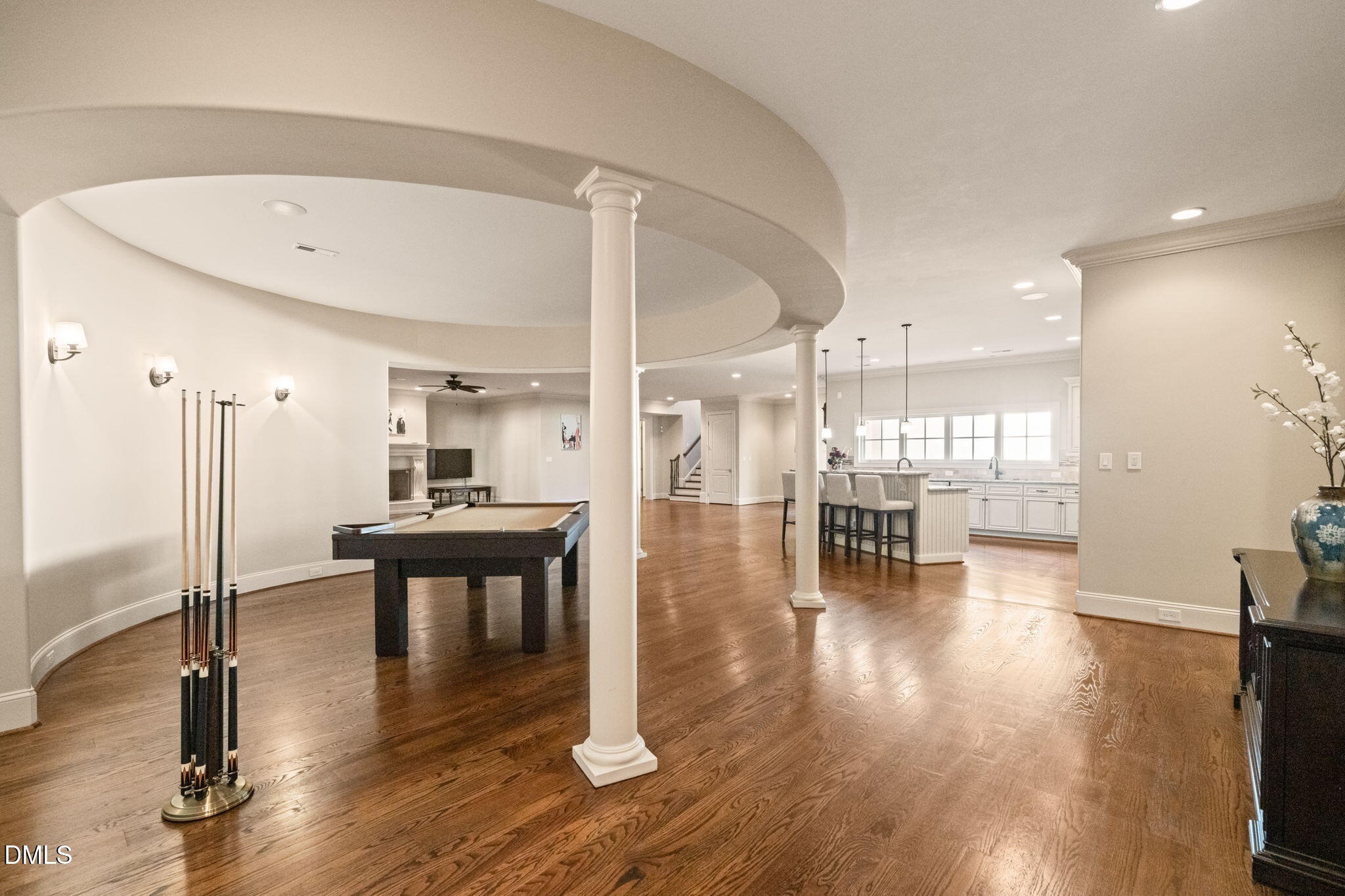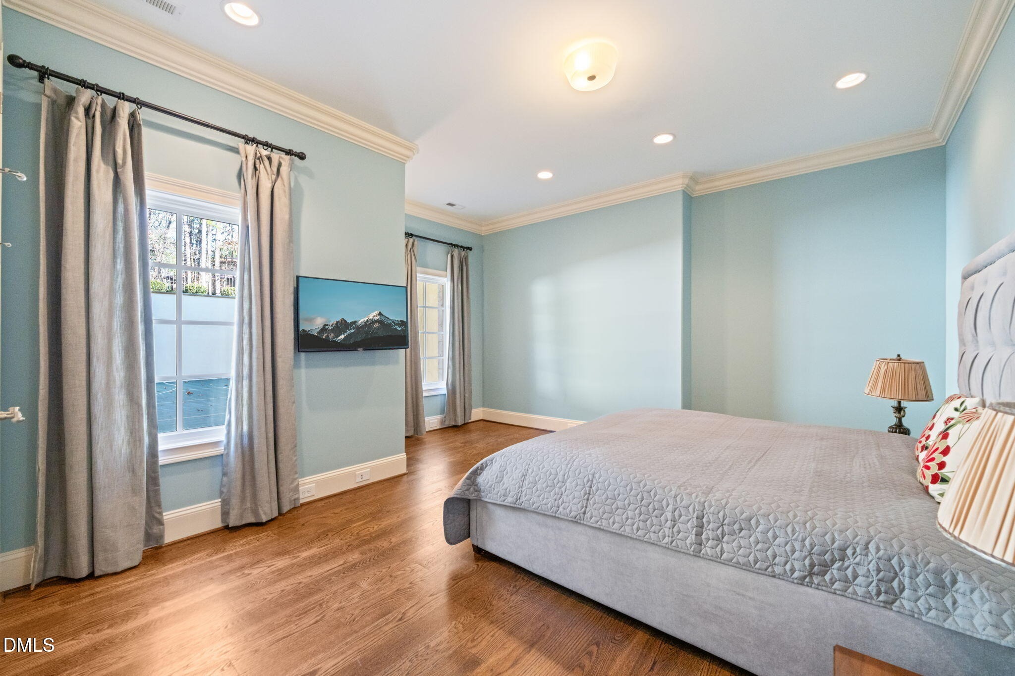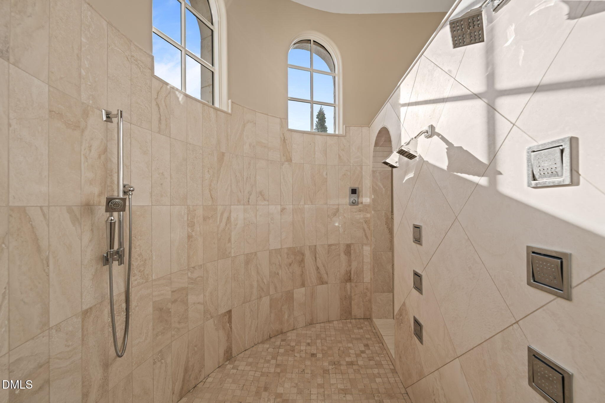 Discover refined elegance in this 13,341 sq. ft. Mediterranean-inspired estate on 3.31 private acres in Maida Vale, one of the Triangle’s premier gated communities. Offering rare privacy with unmatched convenience, this in-town estate sits minutes from RTP, RDU, Duke, UNC, world-class healthcare, and premier shopping. Built with ultra-durable concrete construction and a barrel-tile roof, it delivers lasting quality, energy efficiency, and peace of mind. Designed for both everyday luxury and large-scale entertaining, the home features an expansive covered veranda with an outdoor kitchen, fireplace, lounge area, and retractable window walls; a private sports court; a separate gym with steam shower; a movie theater and wine room; and a level rear yard envisioned for a custom pool (subject to approvals). Seamless indoor/outdoor flow creates an effortless setting for gatherings of any size. A fully self-contained lower level offers exceptional flexibility for extended family or multigenerational living, complete with its own kitchen, two bedrooms, large living area with fireplace, sports court access, and private elevator. The main level includes a secluded owner’s wing with study, formal and informal living spaces, a gourmet chef’s kitchen, floor-to-ceiling windows, guest suite, second office, and direct access to the veranda. Upstairs, three spacious guest suites—including a second primary—feature private balconies overlooking the grounds. Set at the end of a quiet cul-de-sac with a circular drive and covered portico, the home welcomes you with dramatic staircases and clear views to the lush backyard. With its rare acreage, solid construction, low-maintenance design, and resort-style amenities, this residence represents exceptional value among the Triangle’s luxury estates. Conceptual pool rendering is AI-generated.