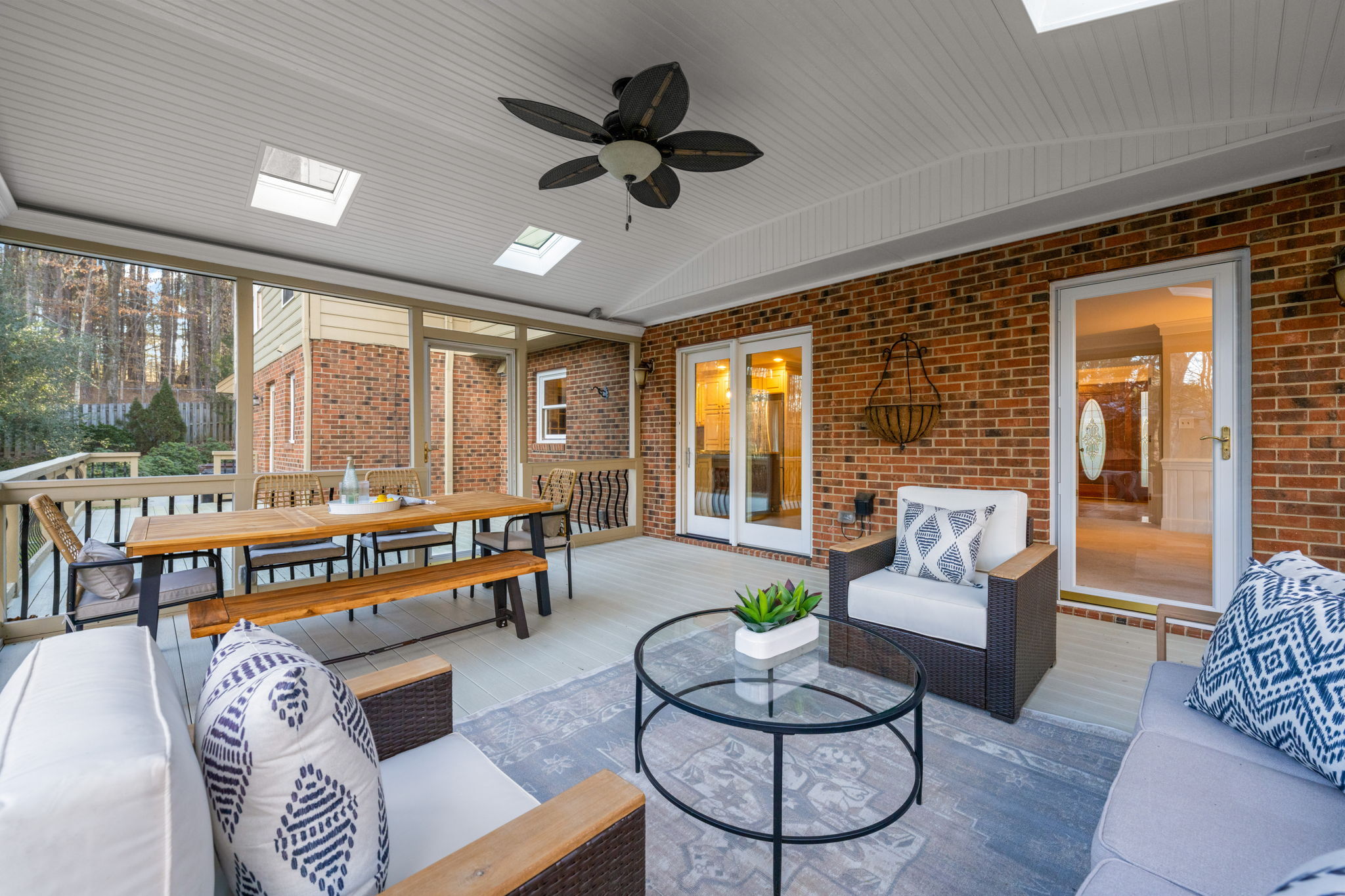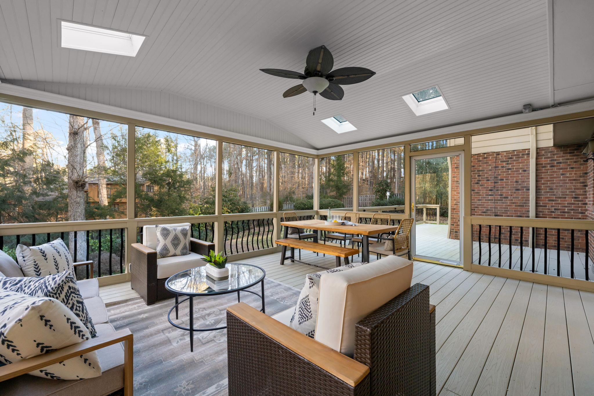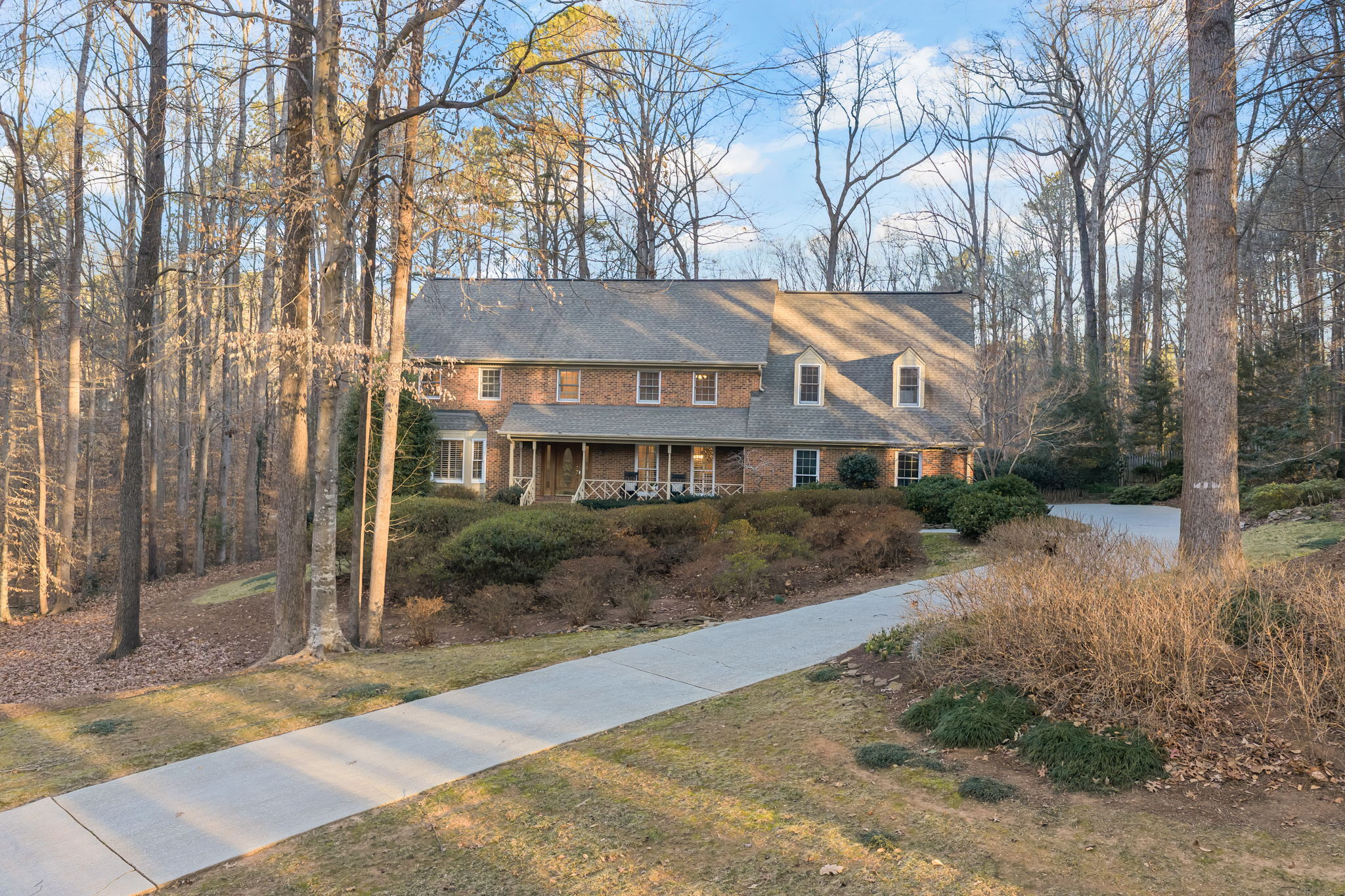 Tucked away on more than an acre of wooded privacy in Heritage Point, 2300 Valley Forge Drive feels like a retreat you get to come home to every day, where the home unfolds effortlessly from an updated kitchen with granite countertops and stainless steel appliances into a spacious dining area and a warm family room with a gas-log fireplace, complemented by a separate formal living room for quiet moments or entertaining. Upstairs, the primary suite is a true escape with its own wood-burning fireplace, walk-in closet, and separate his-and-her baths, while a large bonus room with a wet bar sets the stage for movie nights, games, or a teen retreat, and a third-floor flex space easily becomes an office, studio, or gym. Outside, an oversized screened porch with skylights opens to a sunny deck overlooking peaceful wooded views, perfect for morning coffee or evening gatherings, all with the added convenience of an oversized side-load garage, a long driveway, walkable neighborhood amenities, and quick access to I-540, RTP, RDU, and favorite shops like Trader Joe’s and Whole Foods.