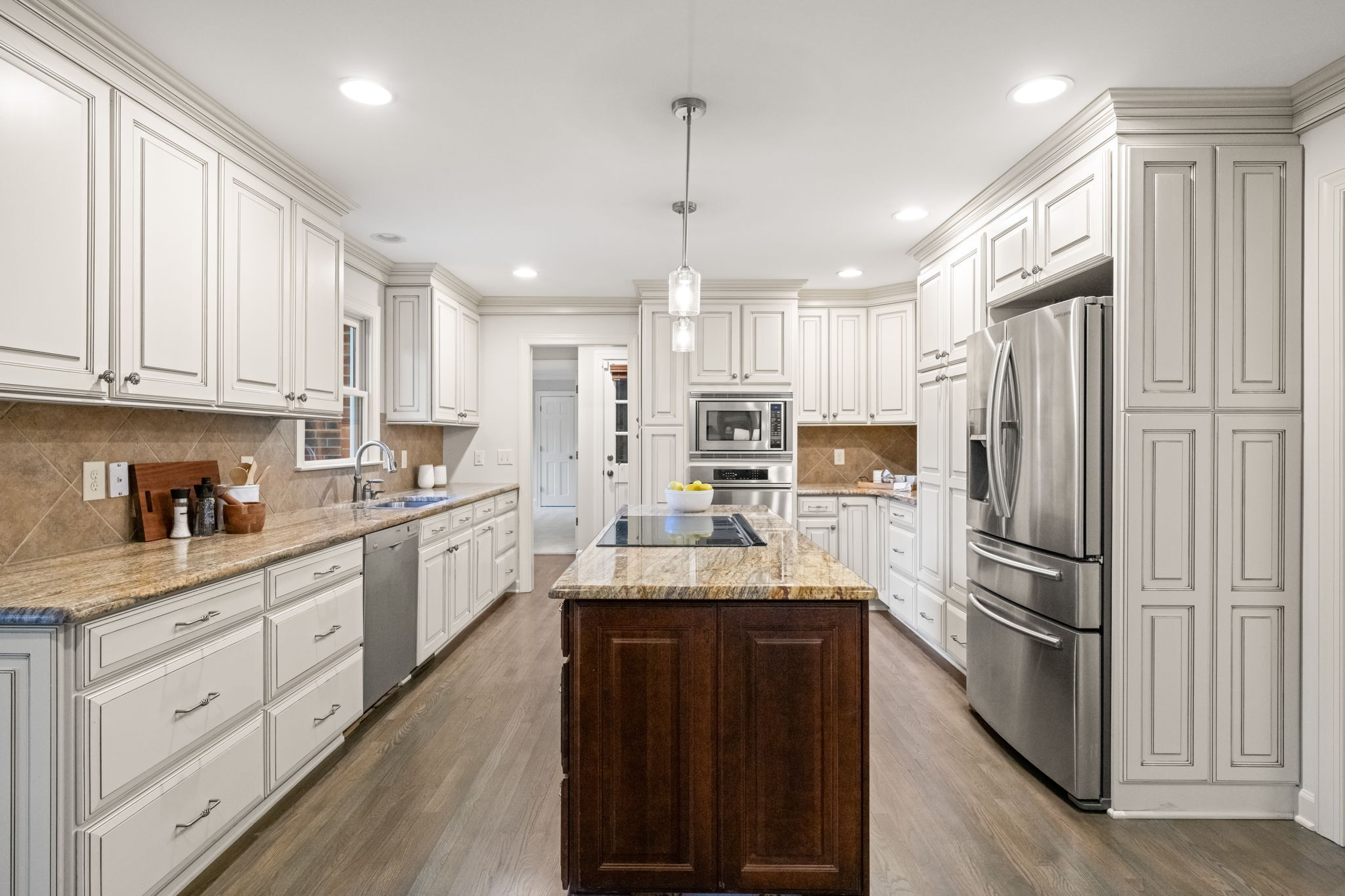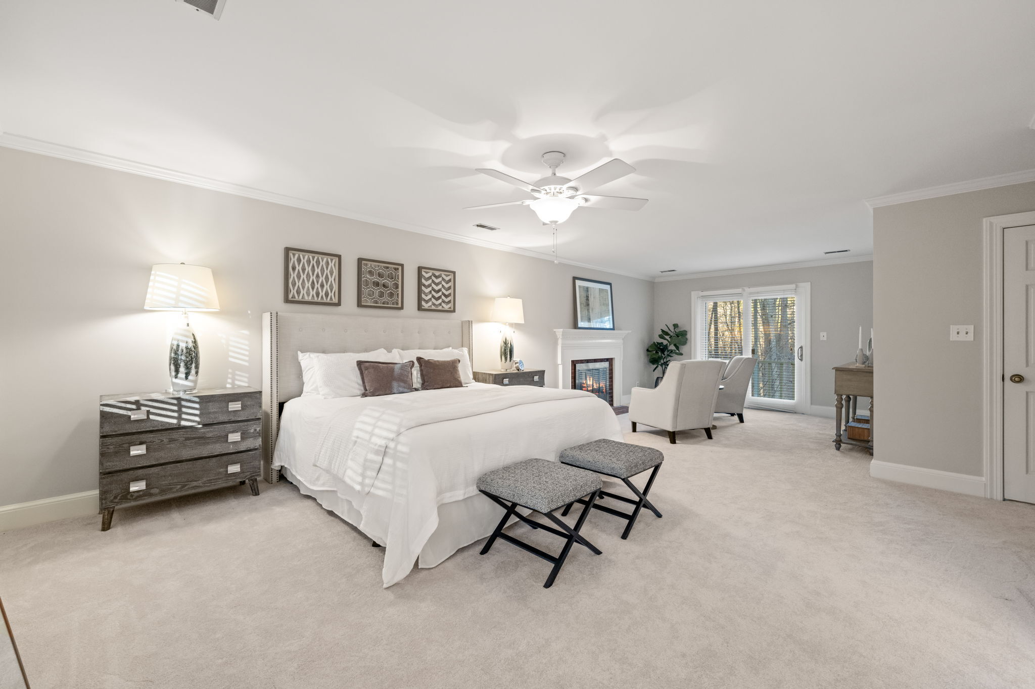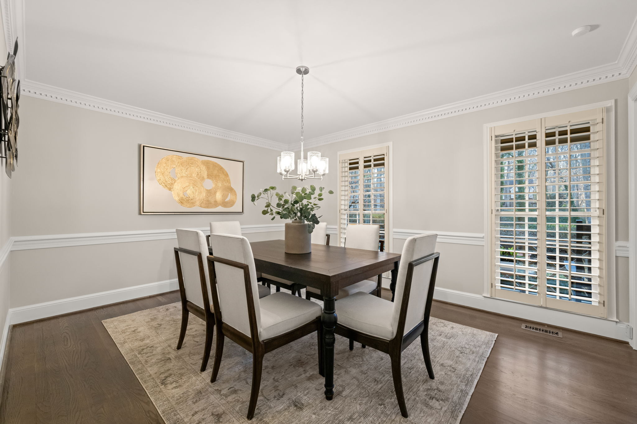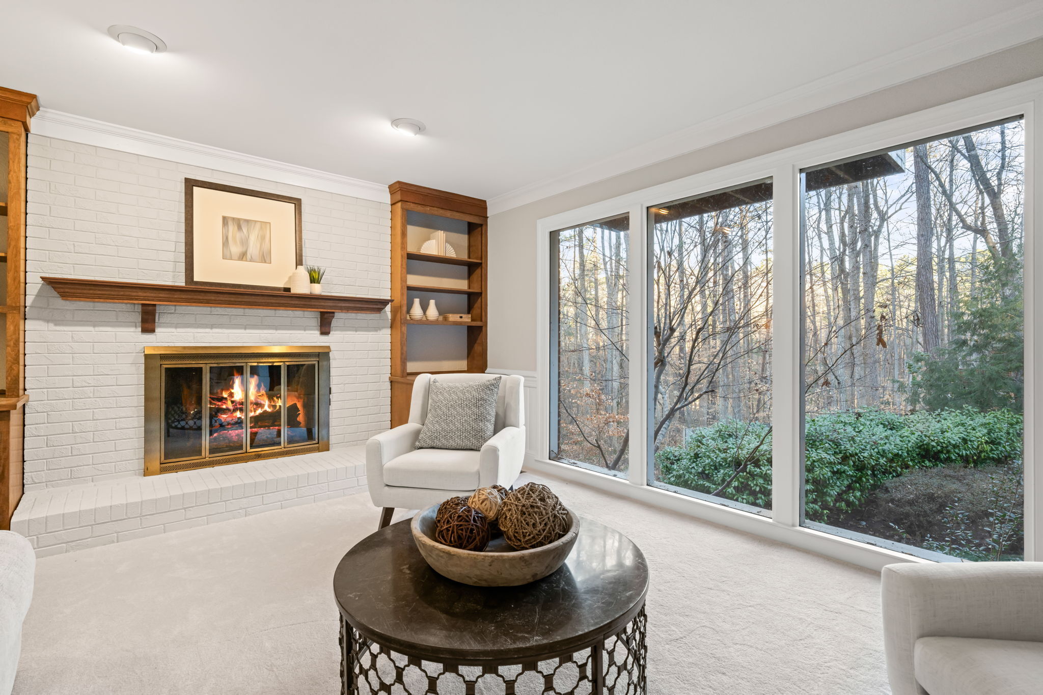 Tucked away on more than an acre of wooded privacy in Heritage Point, 2300 Valley Forge Drive feels like a retreat you get to come home to every day, where the home unfolds effortlessly from an updated kitchen with granite countertops and stainless steel appliances into a spacious dining area and a warm family room with a gas-log fireplace, complemented by a separate formal living room for quiet moments or entertaining. Upstairs, the primary suite is a true escape with its own wood-burning fireplace, walk-in closet, and separate his-and-her baths, while a large bonus room with a wet bar sets the stage for movie nights, games, or a teen retreat, and a third-floor flex space easily becomes an office, studio, or gym. Outside, an oversized screened porch with skylights opens to a sunny deck overlooking peaceful wooded views, perfect for morning coffee or evening gatherings, all with the added convenience of an oversized side-load garage, a long driveway, walkable neighborhood amenities, and quick access to I-540, RTP, RDU, and favorite shops like Trader Joe’s and Whole Foods.