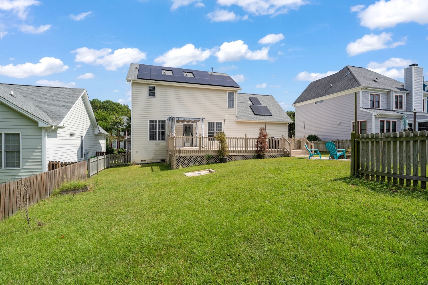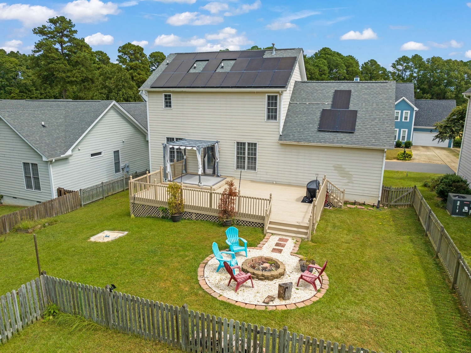 Welcome to 2301 Laurel Valley Way, where comfort meets style in every detail. At the heart of the home, the updated kitchen shines with granite countertops and stainless steel appliances—perfect for gathering friends and family for Fall Football Fun Days. The open layout flows seamlessly into the living area and out onto an oversized deck, ideal for entertaining or relaxing under the stars. Enjoy crisp evenings around the fire pit, creating memories in your own backyard retreat. This home is thoughtfully equipped with fully owned solar panels—no loan to assume! Generating 10,509 kWh annually, the professionally designed system offsets 100% of energy usage, comes with a 25-year warranty, and means major savings with zero energy bills. Clean, efficient living at its finest. Inside, you’ll find three inviting bedrooms, including a renovated primary suite featuring a luxury shower. The fenced backyard offers room for gardening, play, or simply unwinding, while the garage provides both storage and convenience. Life here extends beyond the home with fantastic community amenities: a clubhouse, gym, indoor basketball court, and two swimming pools. Plus, the location can’t be beat—just minutes from downtown Raleigh’s shopping, dining, and entertainment, with easy access to 540 for stress-free commuting. 2301 Laurel Valley Way is more than a house—it’s a lifestyle. Schedule your private tour today and see why this could be your next home.