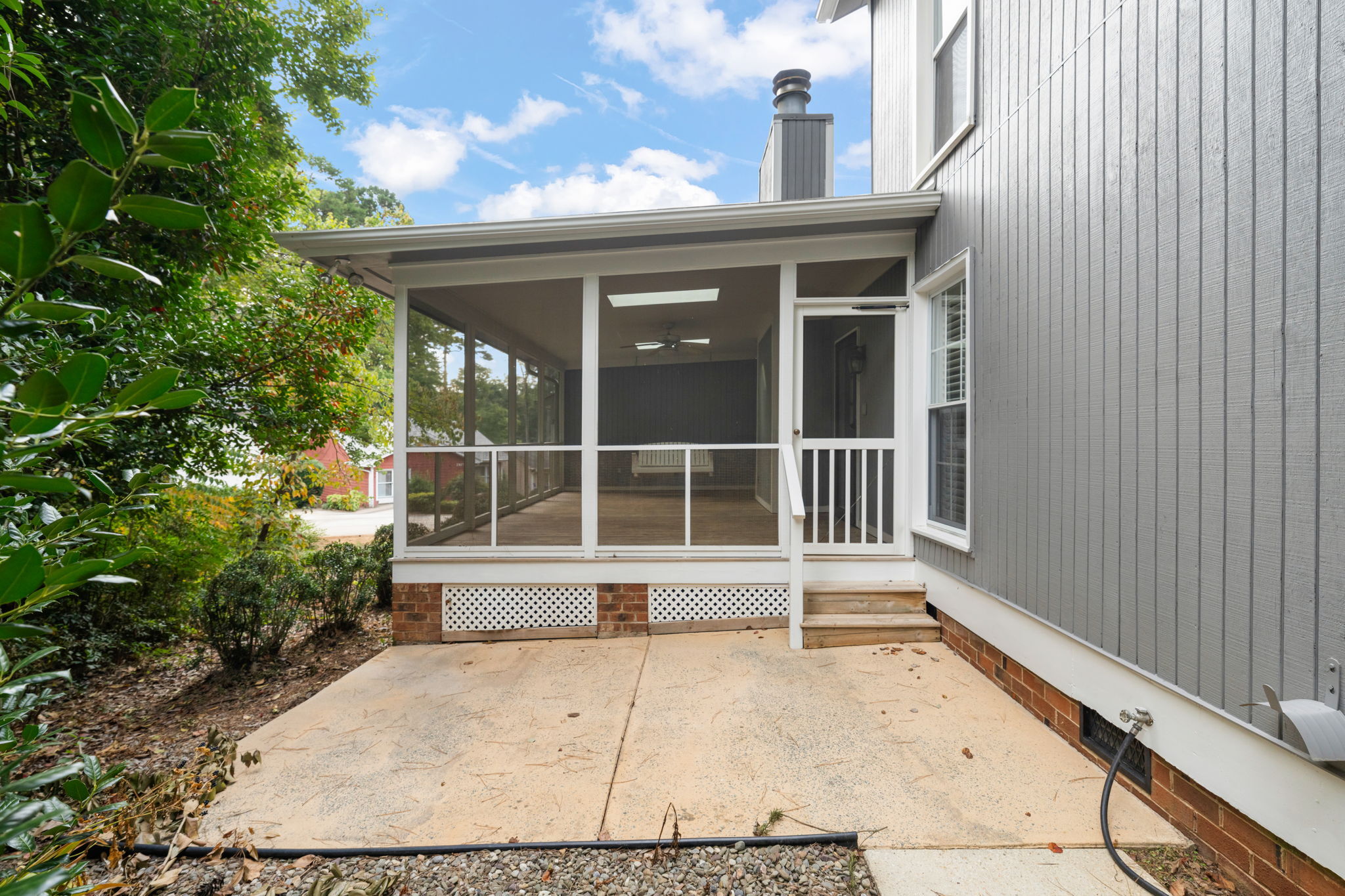Location truly matters—and this home delivers! Conveniently situated just minutes from shopping, dining, and entertainment options, as well as Rex Hospital, Carter-Finley Stadium, the Lenovo Center, and the upcoming Lenovo Center Entertainment District. Step inside this delightful 1.5-story home featuring two spacious primary suites—one on the main floor with its own private office or sitting area and dual closets, and another upstairs offering added flexibility and privacy. The vaulted living room welcomes you with a cozy gas log fireplace and opens to a large screened-in porch, complete with skylights and a porch swing—ideal for relaxing or hosting guests. A dedicated dining area connects seamlessly to a vaulted kitchen designed for function and flow, with plenty of counter space and generous cabinet storage. Additional highlights include a 2-car carport and a floor plan that blends comfort with convenience. Ready for your personal touch!